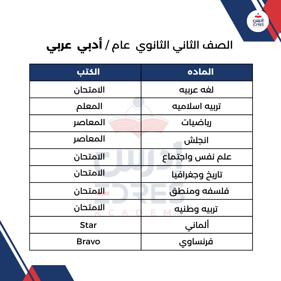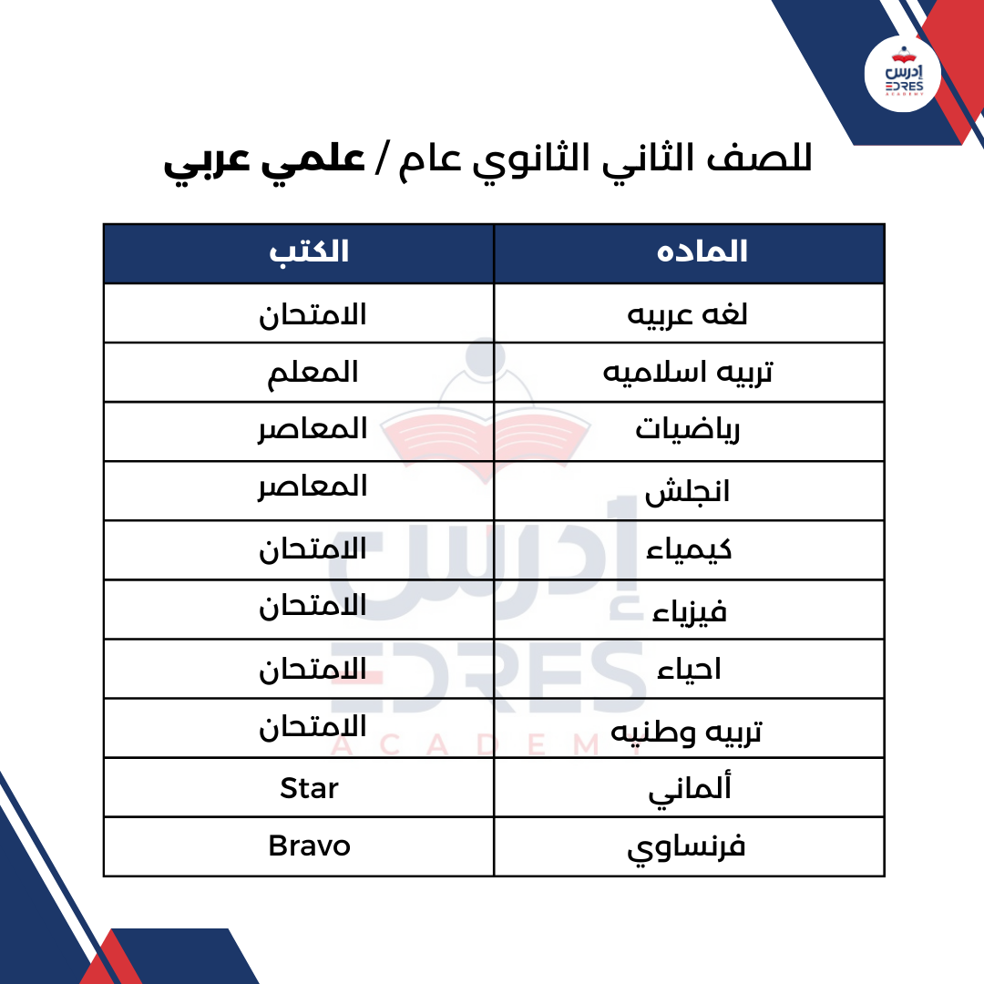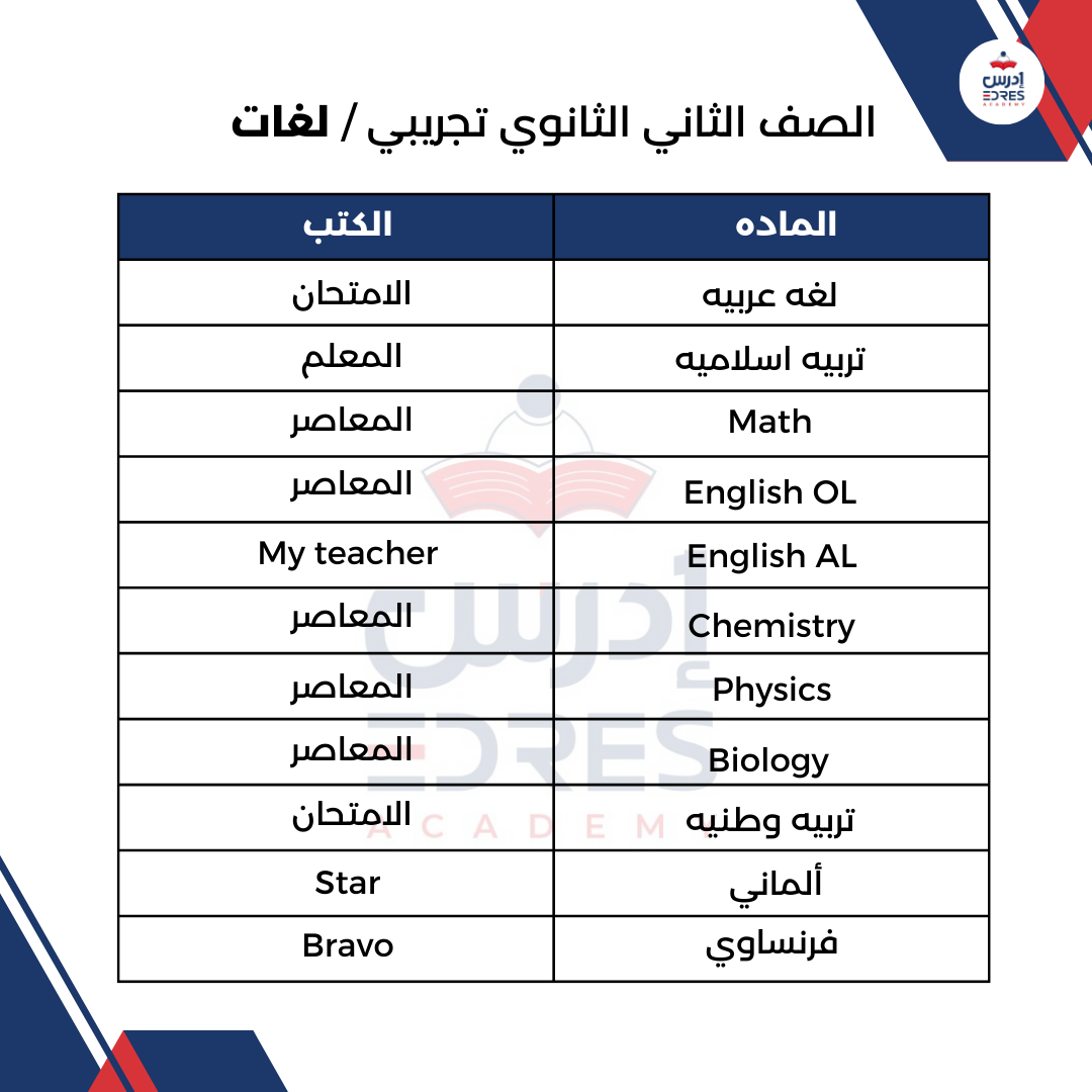 الصف الثاني الثانوي عام /عربي وتجريبي / لغات
